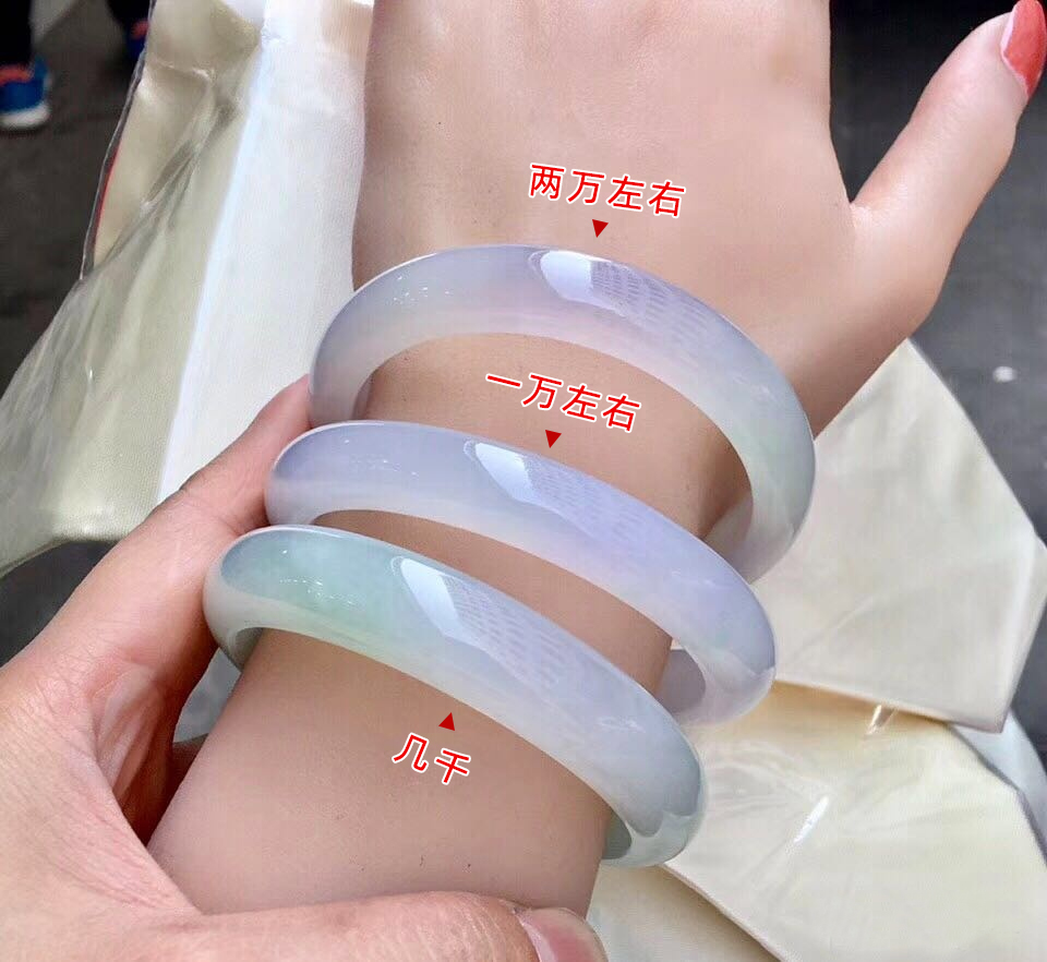 如果这三个都没有颜色,呈白底色,价格减半,若灰底色,暗绿色,价格再减行话看价先看色,无色就看种,无种无色不值钱,下面就是价格两三百的手镯,当然质地算是细腻,有陶瓷鳞片结构很干的更不值钱,十块钱的都有,而其实很多人花两三千买的手镯,也就是这个质地,卖家美其名曰我这个是真的,网上是假的,说实话,这种洗脑的方式十年前还有用,智能时代,大家都不傻,每个人都有自己的渠道。对翡翠感兴趣可添加我微信:dnfc929