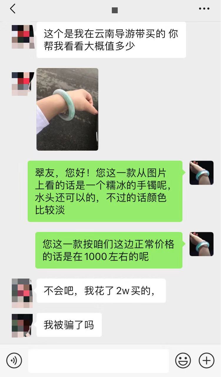 这里肯定就有人要叫了,那我买的这些玉得有多贵!多么不划算!但是你想,你喝的牛奶,是否直接到从奶牛到你嘴巴里面?从养殖牛开始,到规模化生产,到广告投放到品牌效益,中间的博弈,我能看到这个价,才有这次交易,不管中间多少次加价,最后流通到市面上是一线交易市场合理的价格,比别人的高了,你卖不出,自然不会买,或者你得亏本卖,靠忽悠卖高价蒙傻瓜的方式一年你能蒙到一两个算你运气好,特别是现在网络销售价格如此透明的情况下,而且按照我经验,越外行越乱还价,几万的能给你出300,气得你翻白眼!对翡翠感兴趣可添加我微信:dnfc929