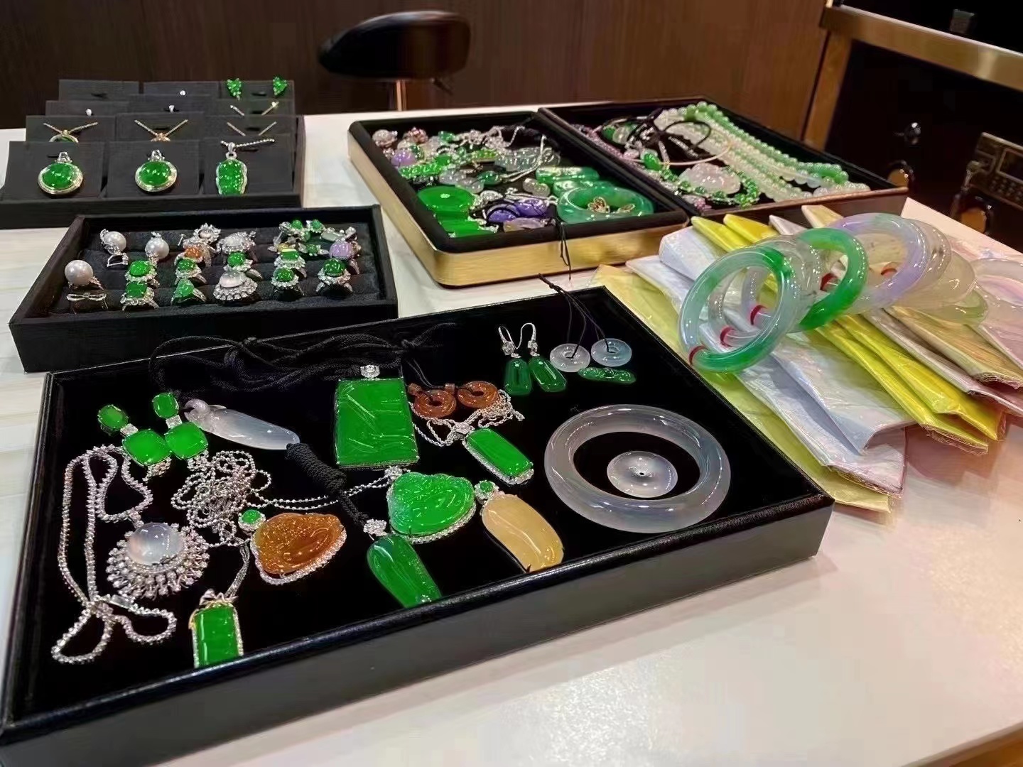 印象里商场的玉手镯都是各种镁光灯打着,在柜台里面犹如皇太后般伺候,而这里十几万、甚至几十万的翡翠,怎么就这么随便乱放,是真的值那么多钱吗?我当时跟所有外行一样,心想要么是假的,要么漫天要价,后来我慢慢了解到,翡翠这行业,货不在多,好货才能带来财富,只有眼力好,特别勤奋的货主,才能保证几十年都不被市场淘汰。对翡翠感兴趣可添加我微信:dnfc929