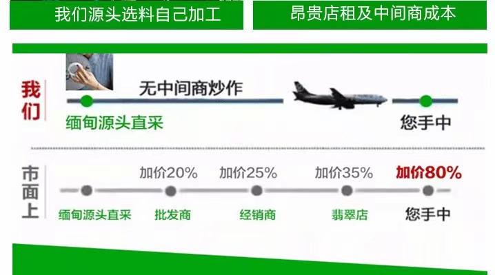 商场里、旅游景点的翡翠,很多都是偏贵的。很多人花好几万买的翡翠,拿来给我看,我们也就卖一万左右,中间的利润是转了好几手的,几万可以买更好的成色跟水种,你说这钱花得冤不冤,这也就是大家为什么在商场看到的翡翠一般都很普通,但是又老贵的原因。有些人会说,我买的是服务、是高档,这类客户就当我没说,首饰嘛,买得开心就好。但相信很多人还是想以同样的价钱买更高档的东西,我家是做一手货源的,款式也是独家设计,看到这篇文章就是咱俩的缘分,不妨加个微信做个朋友,你微信里有个一手货源的翡翠商,怎么说也是对你日后买翡翠有帮助。网海茫茫,下次就不一定能相遇了。对翡翠感兴趣可添加我微信:dnfc929